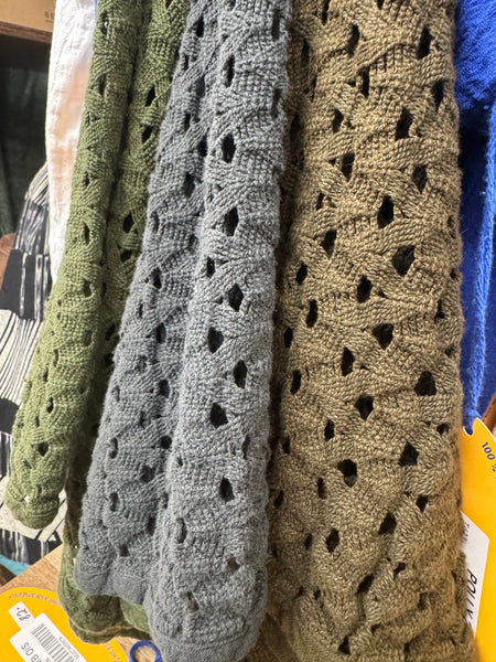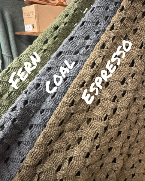 We believe this top will end up being our best selling and FAN FAVORITE TOP!  It is ONESIZE.  Open weave.  And truly works with everything….. over a dress, paired with a skirt, Oh My Gauze pants, jeans, shorts, or you could even use it as a bathing suit cover up.  So many options and so many fabulous colors!  This is a year round, staple piece.  You might want all the colors. 😉