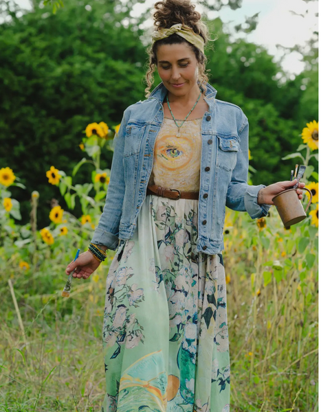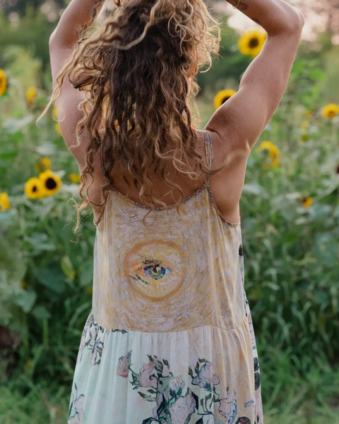 The words "I dream my painting and I paint my dream"; written in the book on the table, is our very favorite quote from the artist himself. As a significant, final touch, we added the eye from Van Gogh's "Self Portrait with a Straw Hat" (1887), a painting which offers an intimate glimpse into the artist's soul.