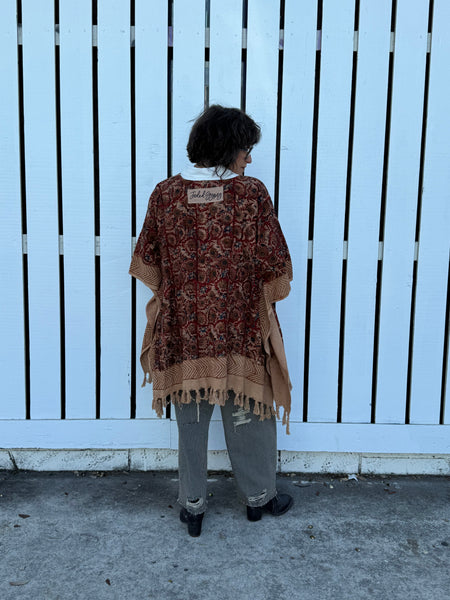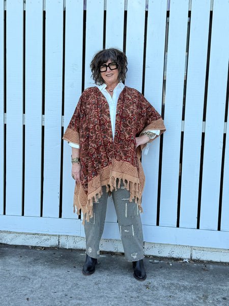 This piece transforms any look—instantly pulling together that artsy, soulful, curated style. Perfect for travel, brunch, market days, or layering through fall and spring. It’s cozy without bulk and dramatic without trying too hard.