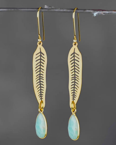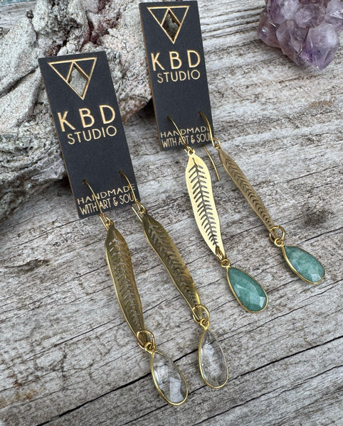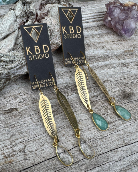 Celebrate Nature with these easy to go with everything nature inspired earrings.These earrings feature a delicate laser cut leaf drop with a beautiful Semi Precious Genuine Stone Tear Drop.
