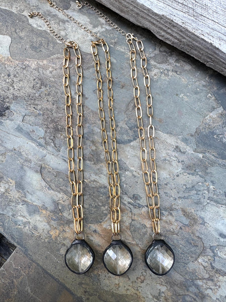 Soldered crystal pendant on gold filled chain. Lobster clasp.  15” chain with 3” extender.