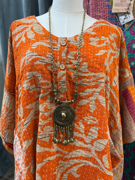 Designed to sit long at 30 inches, it layers easily over textured tops, dresses, and kaftans—bringing a grounded, global feel with just the right amount of drama.