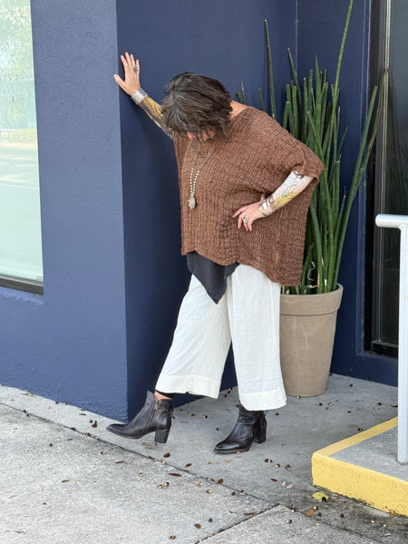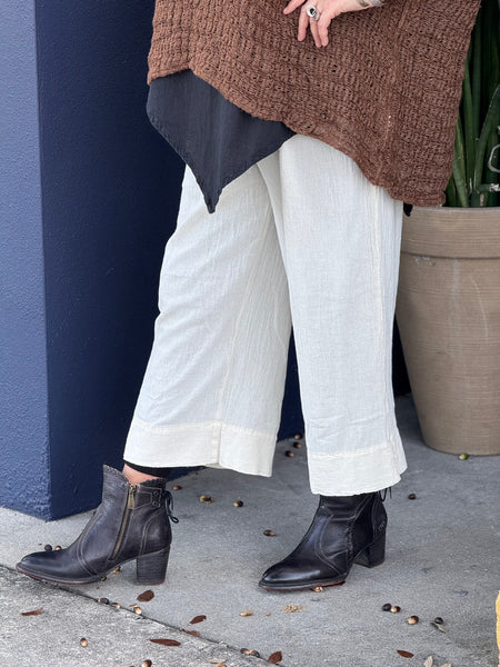The Paula silhouette is relaxed without being oversized — a straight-but-loose leg, subtle ankle crop, and a clean, minimal waistband that keeps everything feeling polished. They pair effortlessly with your favorite tunics, sweaters, gauze tops, denim jackets, and all your SaltLight statement jewelry.