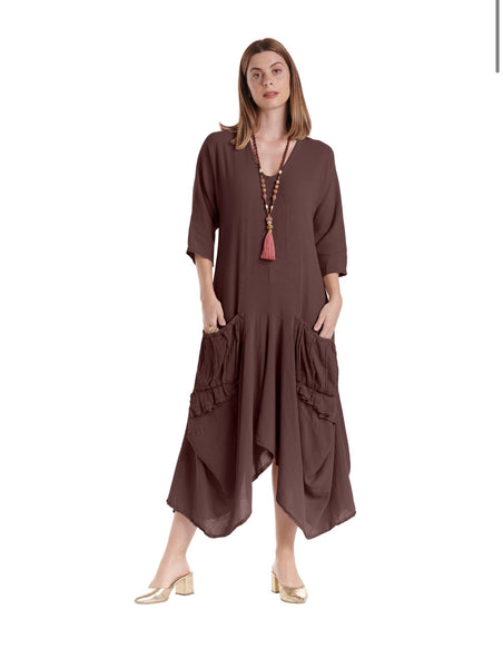 The Oh My Gauze Shepherd Dress is the effortless, artistic silhouette every boho-loving woman needs. Crafted from Oh My Gauze’s signature lightweight breathable cotton, this dress features a relaxed fit with a beautifully draped hemline that moves with you. The standout detail? Two oversized textured pockets that add sculptural dimension and functional charm — perfect for women who love lagenlook dresses, boho cotton dresses, and easy everyday style with personality.