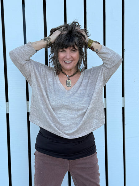 City cool with a softly sculpted silhouette, the Studio Drape Top is designed for women who love shape without structure. This relaxed, boxy fit features a fluid drape that moves with you, creating an intentional, artful look from every angle. The subtle V-neckline flatters without revealing too much, while the cropped length is perfectly balanced to layer over tanks or pair with high-rise pants and denim.